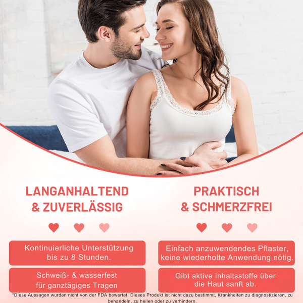 Love Patches liefern gleichmäßige Energie, eine bessere Durchblutung, Hormonbalance und reduzierten Stress, sodass Intimität sich natürlich und angenehmer anfühlt.