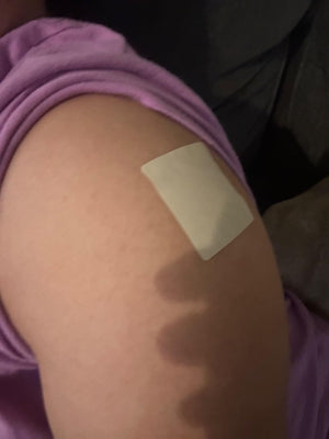 Stick it on clean, dry skin (arm or thigh). That’s it.