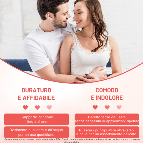 Love Patches forniscono energia costante, migliorano il flusso sanguigno, l'equilibrio ormonale e riducono lo stress, rendendo l'intimità naturale e più piacevole.